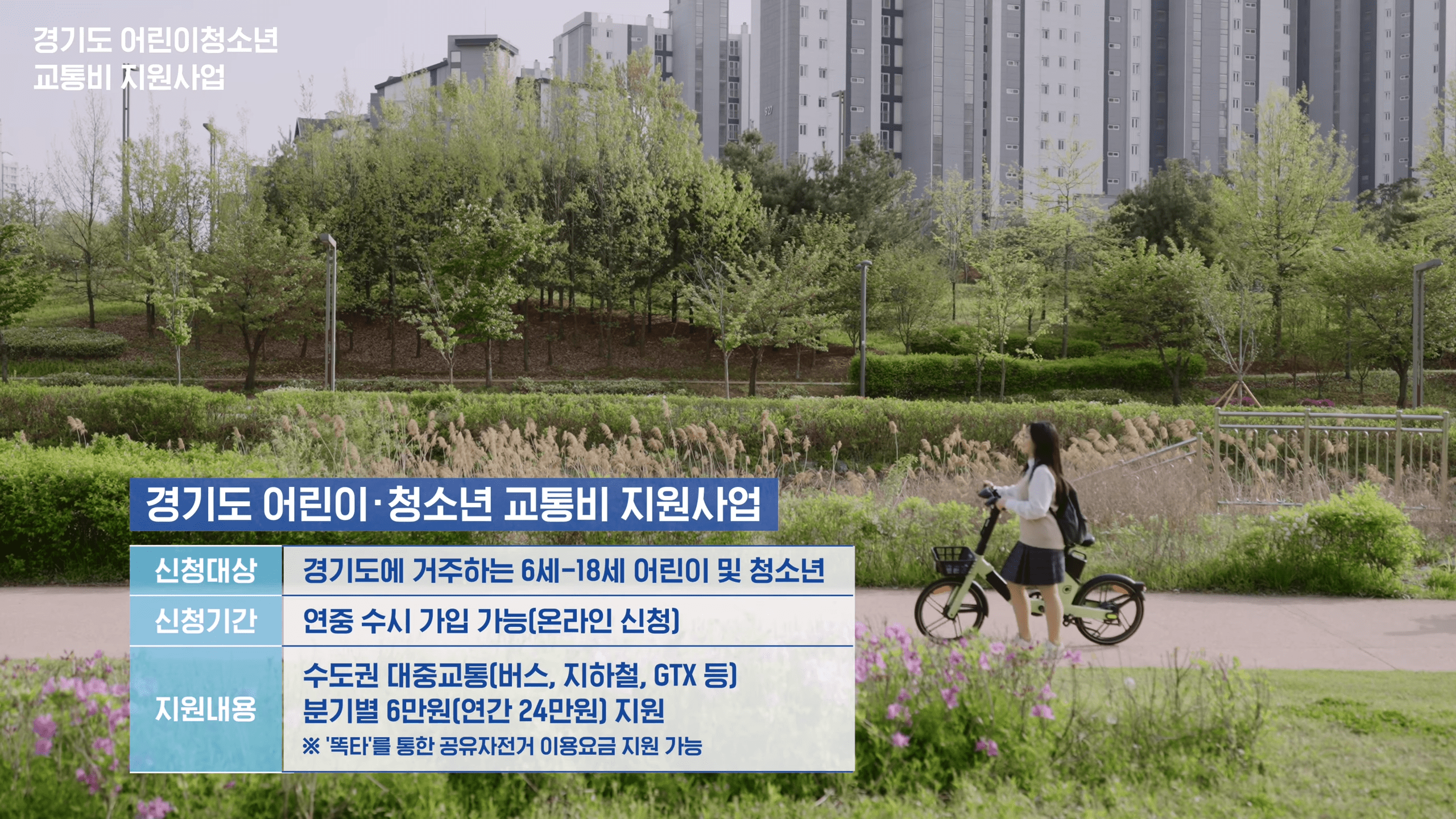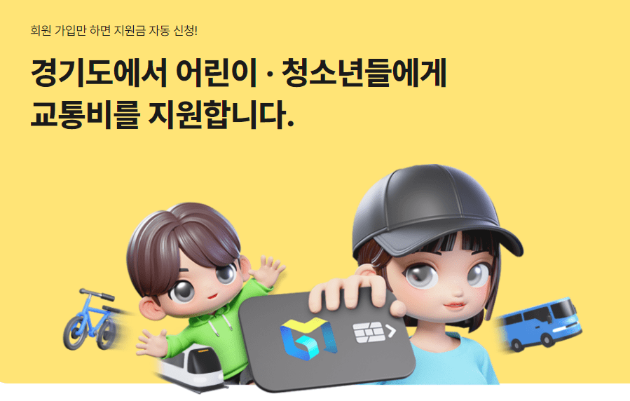 경기도 어린이 청소년 교통비 지원사업은 6세~18세의 경기도에 주소지를 두고 있는 어린이와 청송년을 대상으로 교통비를 최대 연 24만 원까지 지원받을 수 있게 되었습니다.