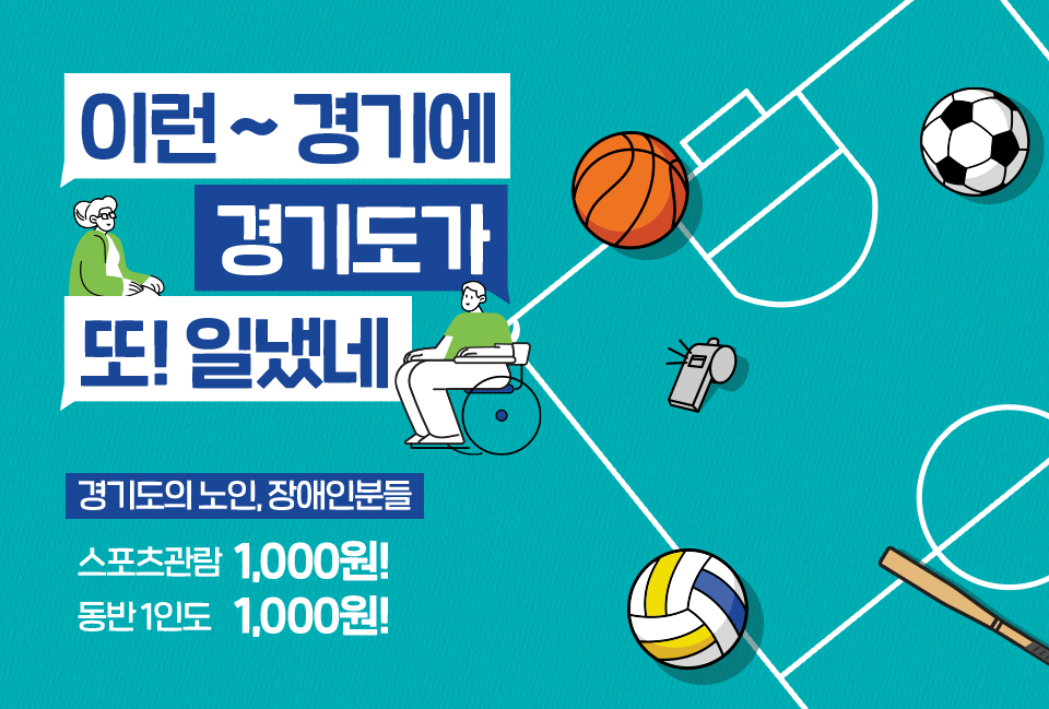 이제 경기도 어르신들과 장애인 분들은 경기도 내 모든 프로 스포츠를 단돈 1천원으로 즐기시길 바랍니다.