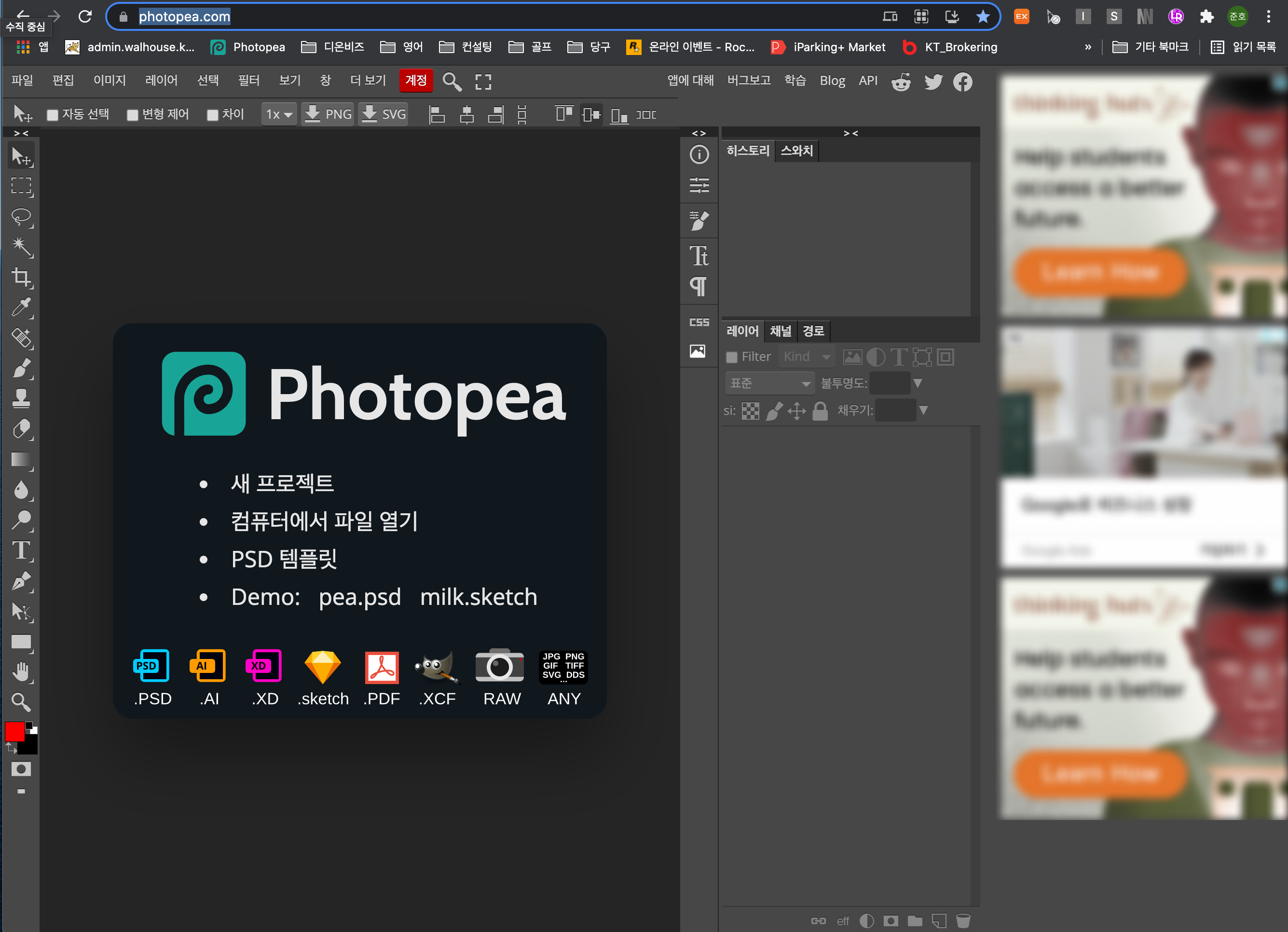 PSD 파일포맷 외에도 자주 사용되는 다양한 파일포맷을 읽고 편집할 수 있습니다~